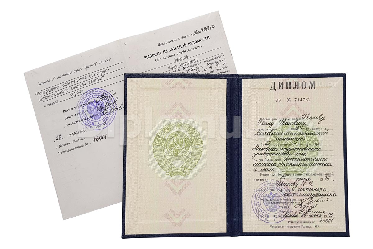 Специалисты нашей компании изготовят Ваш диплом внимательно и профессионально — квалификация, специальность, учебная программа, названия предметов, курсовых и ВКР, оценки, уникальный номер — оформление будет такое же, как при заполнении в нужном учебном заведении. «Мокрая» гербовая печать РФ с правильными данными об образовательной организации. Работодатель никогда не усомнится в подлинности документа, поскольку его невозможно отличить от оригинального.
