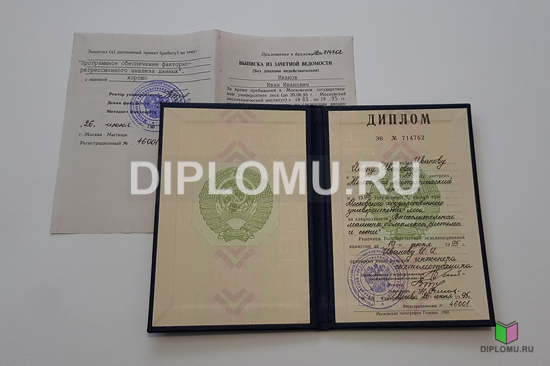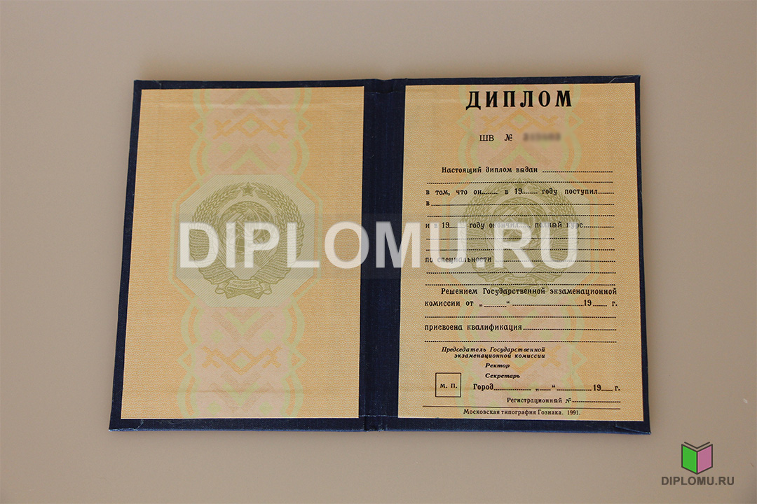 На нашем сайте Вы можете купить диплом ВУЗа СССР о высшем образовании с окончанием института или университета в период с 70-x годов и до 1996 года включительно. До 1991-1993 годов старые дипломы заверялись гербовой печатью СССР (РСФСР), а позднее — печатью РФ с двуглавым орлом. Наши специалисты заполнят диплом по всем правилам, установленным на тот период. Заверяются «мокрыми» печатями и нужными подписями.